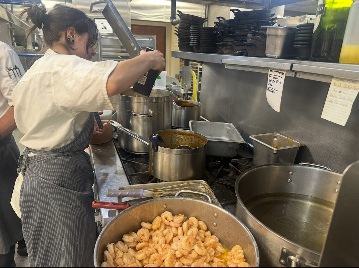 But Jessie’s experience in her Introduction to à la Carte Cooking class —in which chef instructor Roshara Sanders asked students to prepare multi-course menus for fellow students using batch cooking and à la carte style service—showed a much more food waste-aware school. Students were tasked with using all the waste food from the dishes they made that day to make an additional dish, to keep the excess from being composted.