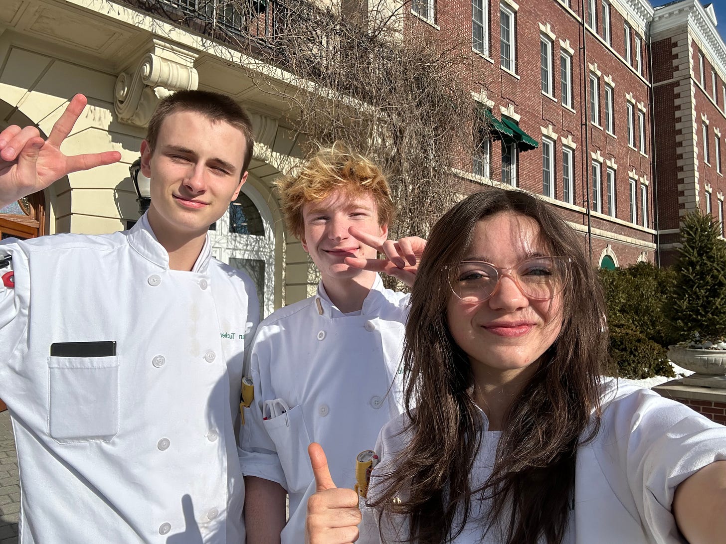 All three have sought added challenges, and all are in training for the 2026 post-secondary school level of the Skills USA competition. One day a week, each of them “shadows” one of the two CIA entrants in this year’s competition. Tristan and Nathan also work part-time at American Bounty, one of the CIA’s three on-campus restaurants.